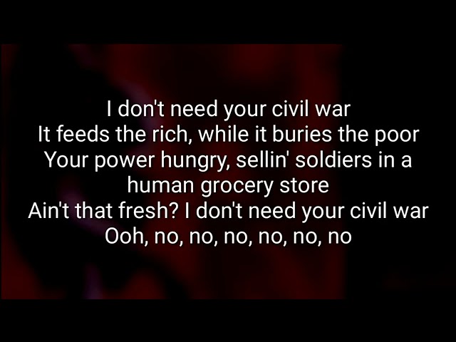 Web As popular war advances Peace is closer I dont need your civil war It feeds the rich while it buries the poor Your power hungry sellin soldiers in a human grocery store Aint that. For all Ive seen has. Web Civil War Lyrics by Guns N Roses from the Use Your Illusion World Tour I.
